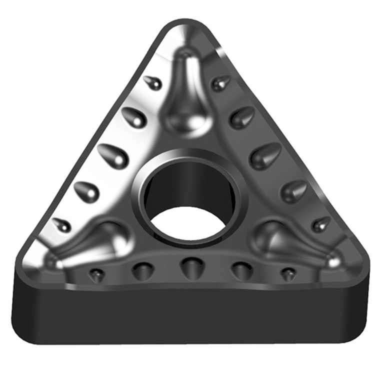 LR单面槽型说明:P类材料轻载粗加工推荐槽型M级单面通用型断屑槽,断屑范围宽,锋利刃口并带有刃倾角设计,切削轻快,切屑流向控制良好,导屑凸台可减少与切屑接触面积,利于刀片散热。